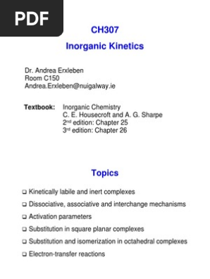 Ch307 Kinetics Pdf Coordination Complex Chemical Reactions
